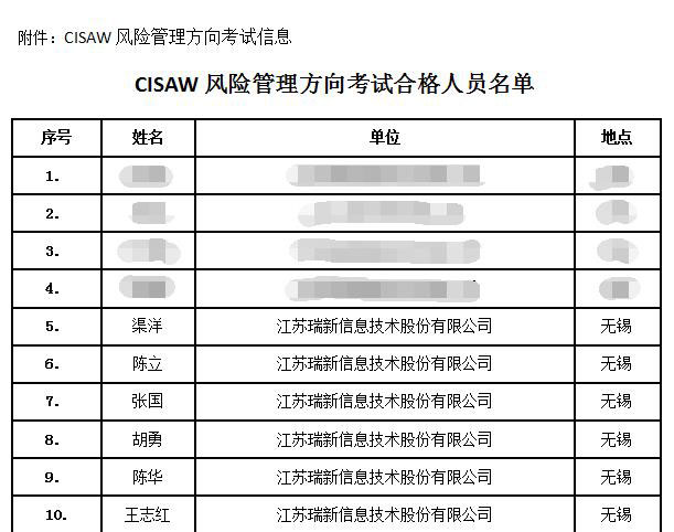 江蘇瑞新信息技術股份有限公司專注于開拓業(yè)務范圍的同時,也十分重視公司員工的素質(zhì)的提升和進步,公司大力支持員工參加專業(yè)資格認證以更好地為客戶服務。通過多年的工作經(jīng)驗積累和系統(tǒng)化的集中學習,在2018年5月11號風險管理方向?qū)I(yè)級考試的的6位員工全部通過考試,其中三人通過專業(yè)級認證。