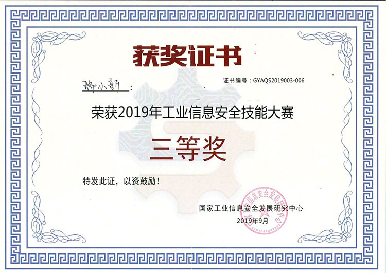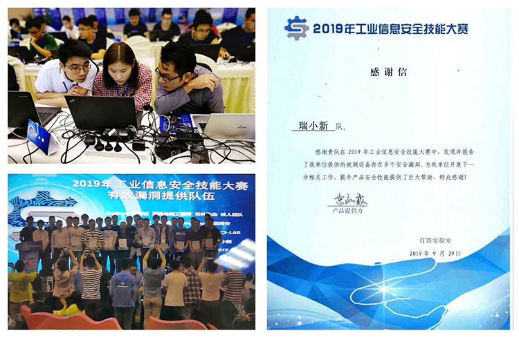 2019年工業(yè)信息安全技能大賽決賽于9月29日在成都中國西部國際博覽城拉開戰(zhàn)幕。來自瑞新股份的“瑞小新”戰(zhàn)隊(duì)在本次比賽中表現(xiàn)神勇,我司戰(zhàn)隊(duì)在本次大賽中經(jīng)歷了個(gè)人線上賽、線下巡回賽、全國復(fù)賽等多輪考驗(yàn),最終脫穎而出,喜獲本次大賽的三等獎(jiǎng)。并且作為提供有效漏洞隊(duì)伍,收到了產(chǎn)品提供方的感謝信。