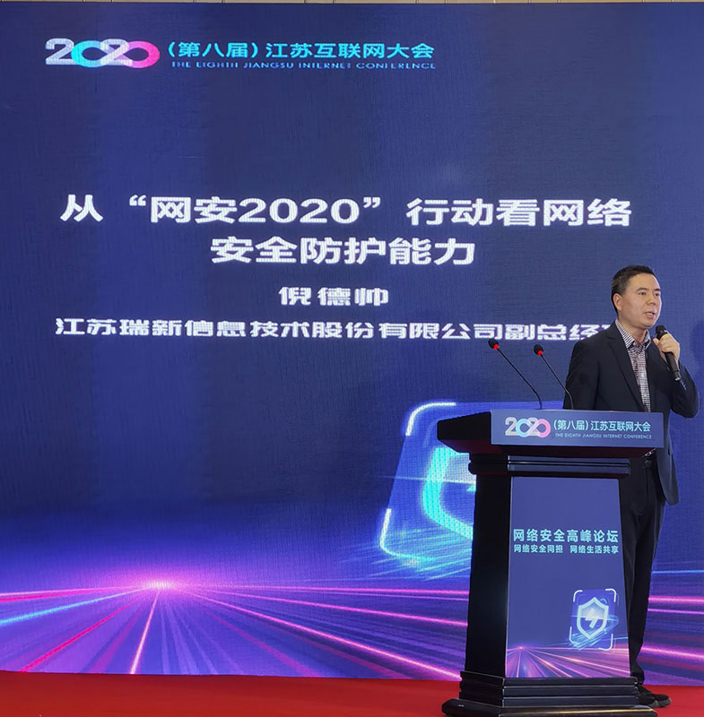 江蘇瑞新副總經(jīng)理倪德帥受邀作嘉賓演講,演講主題為“從‘網(wǎng)安2020’行動(dòng)看網(wǎng)絡(luò)安全防護(hù)能力”。