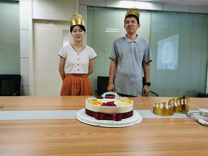 最后,按照公司的慣例,公司為當(dāng)月的壽星慶祝生日,精心準(zhǔn)備了生日蛋糕和生日禮物。