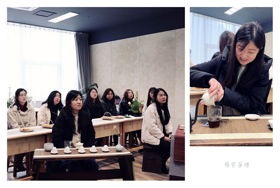 在靜習(xí)茶禮課堂,老師向大家講授了茶的分類知識,普及了茶具、茶禮和選茶、泡茶等傳統(tǒng)文化,并帶領(lǐng)大家體驗(yàn)了一整套茶藝流程。