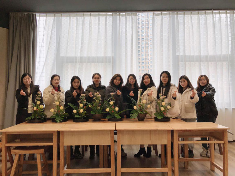 在中式插花課堂,老師從花枝修剪、造型搭配等方面進(jìn)行了詳細(xì)的講解,普及了基本中式插花常識及操作要領(lǐng),現(xiàn)場演示并帶領(lǐng)大家完成了插花制作。
