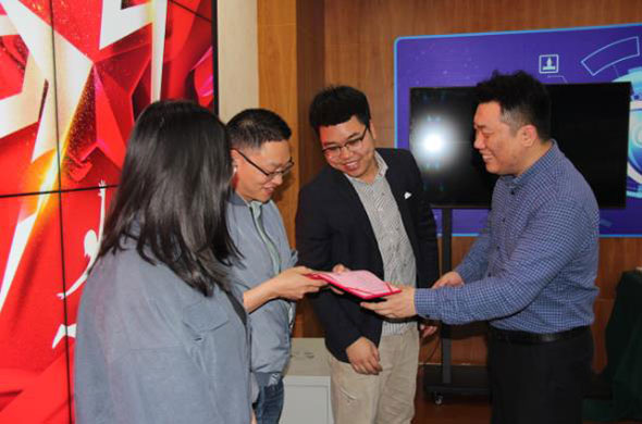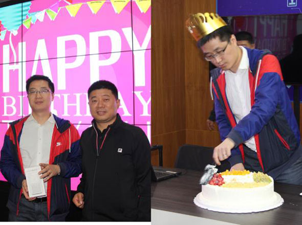 最后,公司組織了4月份員工集體生日,公司總經(jīng)理路世強(qiáng)親自為壽星們送禮物,送祝福。