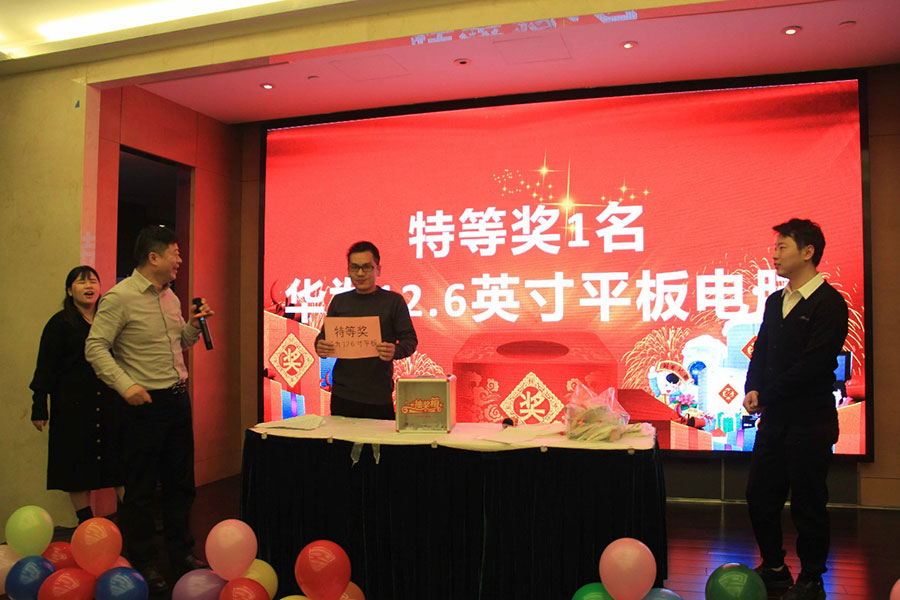 晚上,在華美達(dá)國際酒店組織了2021年公司年會晚宴,組織了集體生日會、抽獎等一系列活動。
