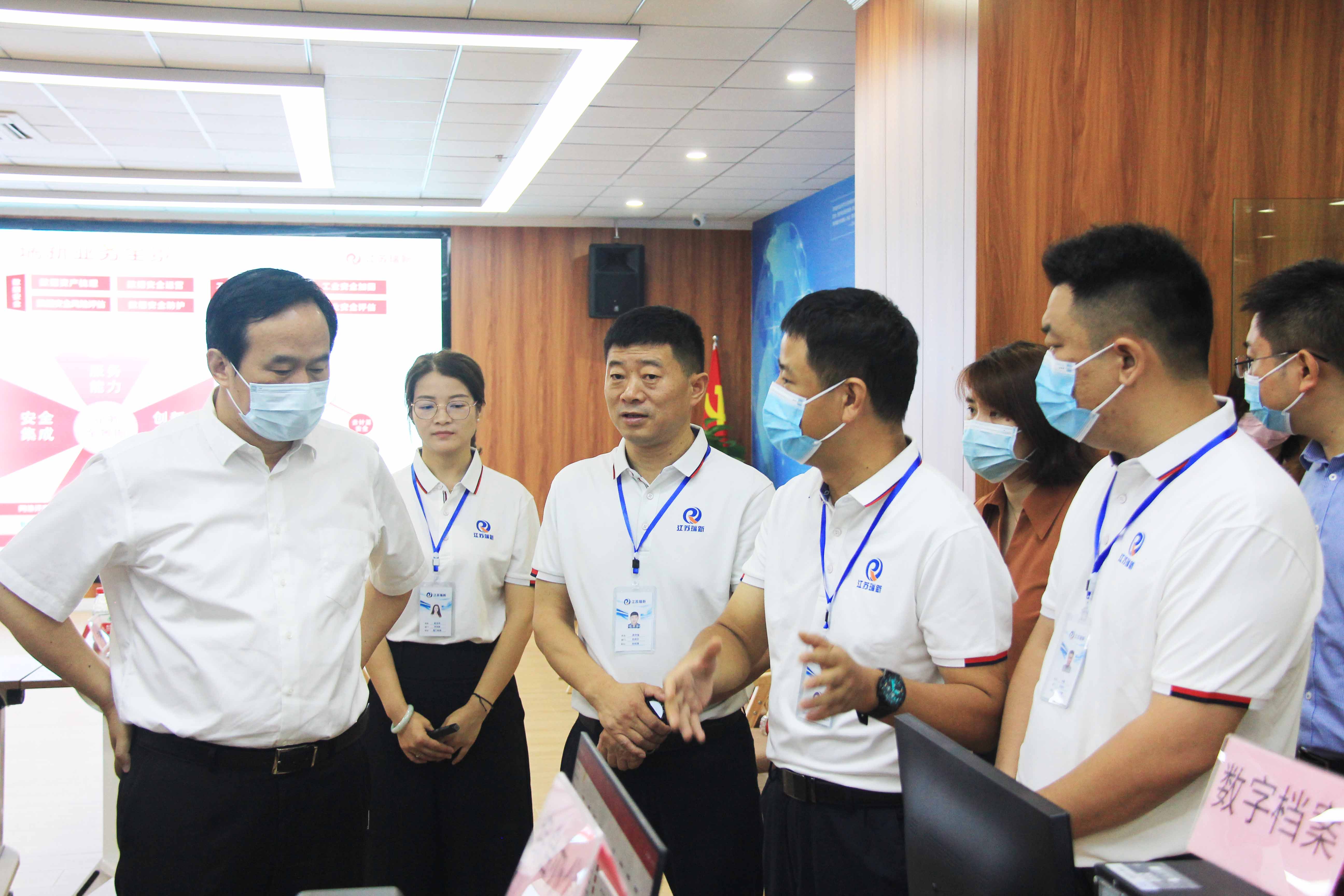 2022年7月21日上午,常州市委常委、秘書長杭勇和常州市委副秘書長、市委辦主任莊小濤蒞臨江蘇瑞新調(diào)研指導(dǎo)信息技術(shù)應(yīng)用創(chuàng)新產(chǎn)業(yè)建設(shè)工作。常州市科技局、常州市工信局、常州市委機(jī)要局、常州市大數(shù)據(jù)局、新北區(qū)黨政辦、新北區(qū)經(jīng)發(fā)局、新北區(qū)科技局相關(guān)負(fù)責(zé)人參加調(diào)研。