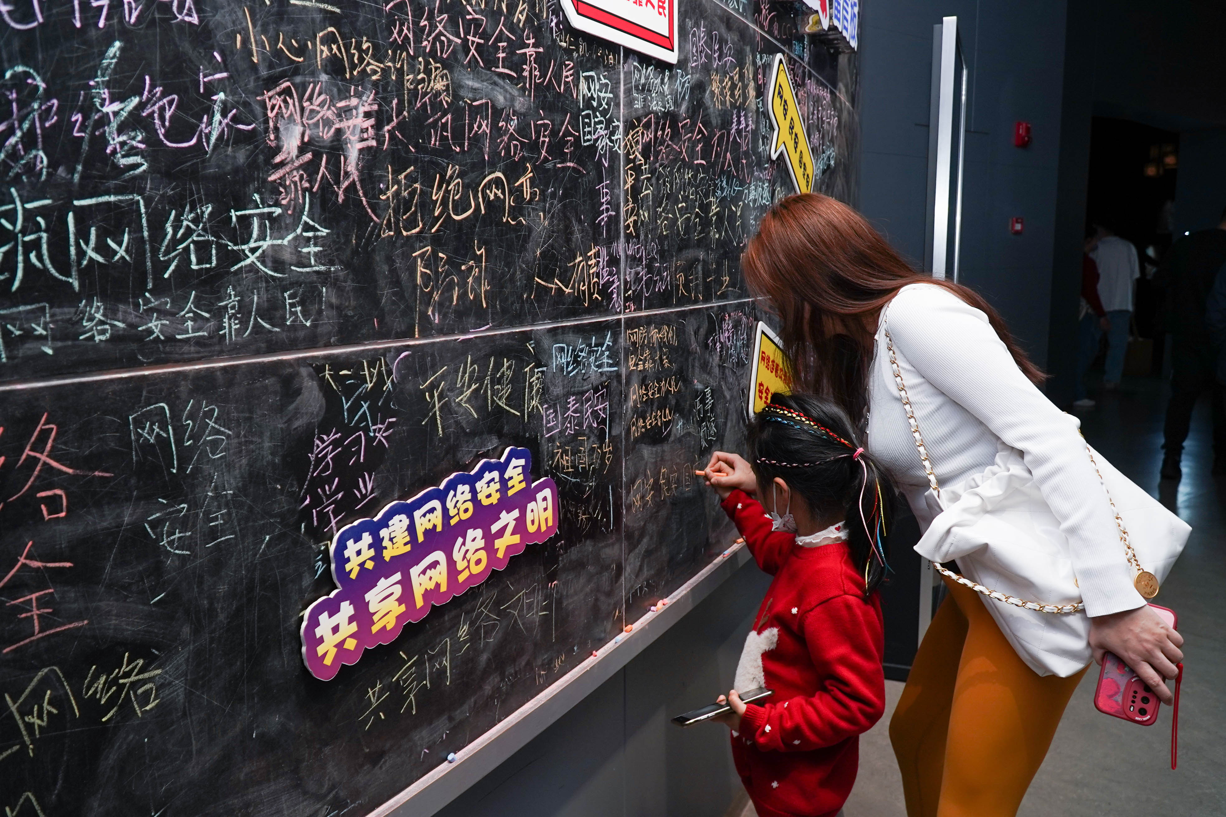 ? 在博物院數(shù)字館,專門設(shè)計了網(wǎng)絡(luò)安全“數(shù)字沉浸式互動體驗”展區(qū),展區(qū)內(nèi)大屏幕滾動播放網(wǎng)絡(luò)安全宣傳標(biāo)語、網(wǎng)絡(luò)安全書法作品和網(wǎng)絡(luò)安全宣講視頻,在互動區(qū)觀眾在留言板上撰寫自己對網(wǎng)絡(luò)安全的切身感受。