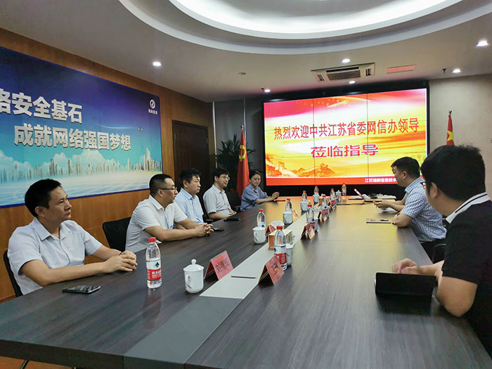 2020年9月15日,江蘇省委網(wǎng)信辦副主任王萬(wàn)軍,在東南大學(xué)網(wǎng)絡(luò)空間安全學(xué)院院長(zhǎng)程光、常州市委網(wǎng)信辦副主任蔣寶琴等領(lǐng)導(dǎo)的陪同下蒞臨我司調(diào)研指導(dǎo)網(wǎng)絡(luò)安全工作。