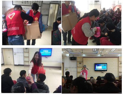 新北區(qū)社會福利中心是一個以孤寡老人為主的敬老院,志愿者們的到來,使平日寂靜的小院頓時熱鬧起來,瑞新志愿者們?yōu)槔先藗兯蜕狭讼憬?、牛奶、面包等營養(yǎng)品,社區(qū)人員為老人表演了:唱歌、舞蹈、戲曲等文藝節(jié)目。慰問過程中,瑞新志愿者們與老人促膝交談,了解了老人們的生活狀態(tài),傾聽他們的故事并囑咐他們要保重身體。