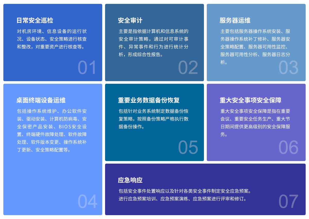 安全運(yùn)維服務(wù)是以建設(shè)用戶單位的信息安全總體框架為基礎(chǔ),以安全策略