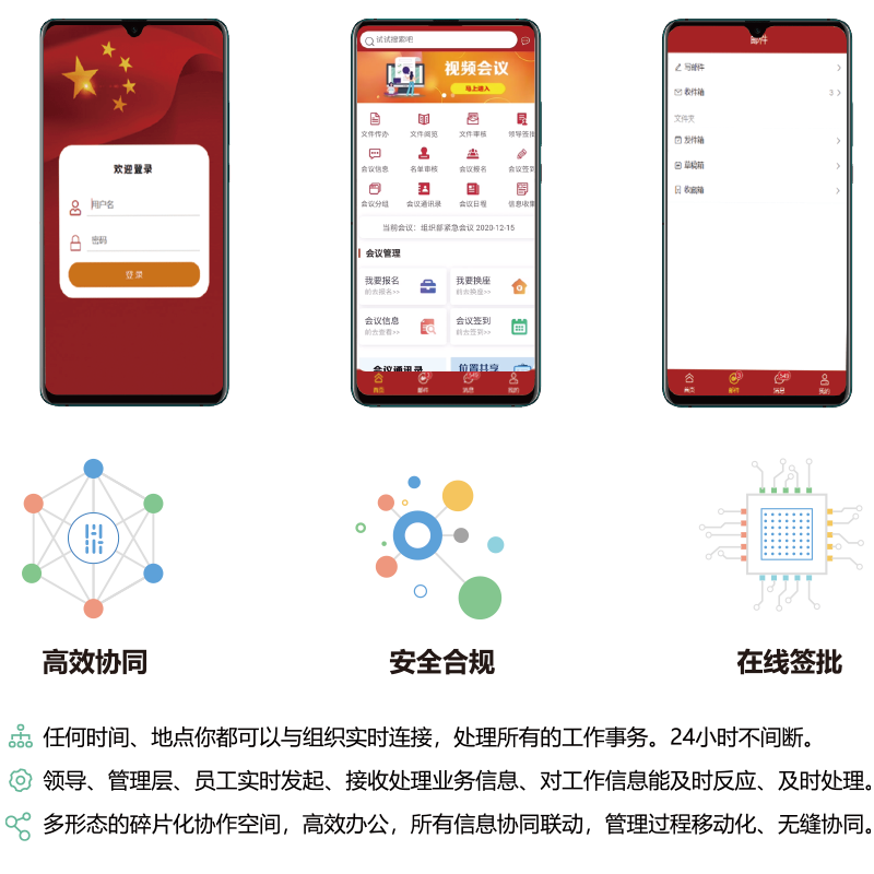 基于安全應(yīng)用下的移動(dòng)化辦公,支持原生APP框架,微信應(yīng)用服務(wù)化,前后端分離,與電腦端無(wú)縫切換,支持內(nèi)外網(wǎng)網(wǎng)閘數(shù)據(jù)交換無(wú)縫銜接,支持信創(chuàng)應(yīng)用移動(dòng)化。